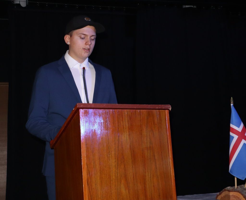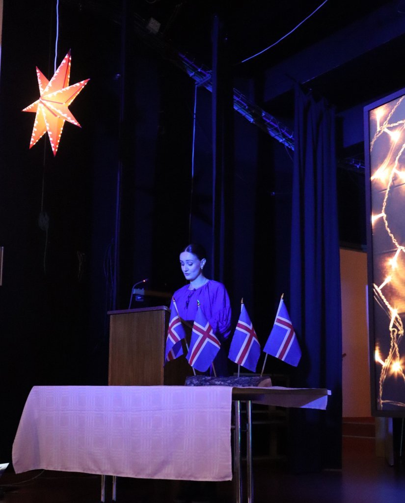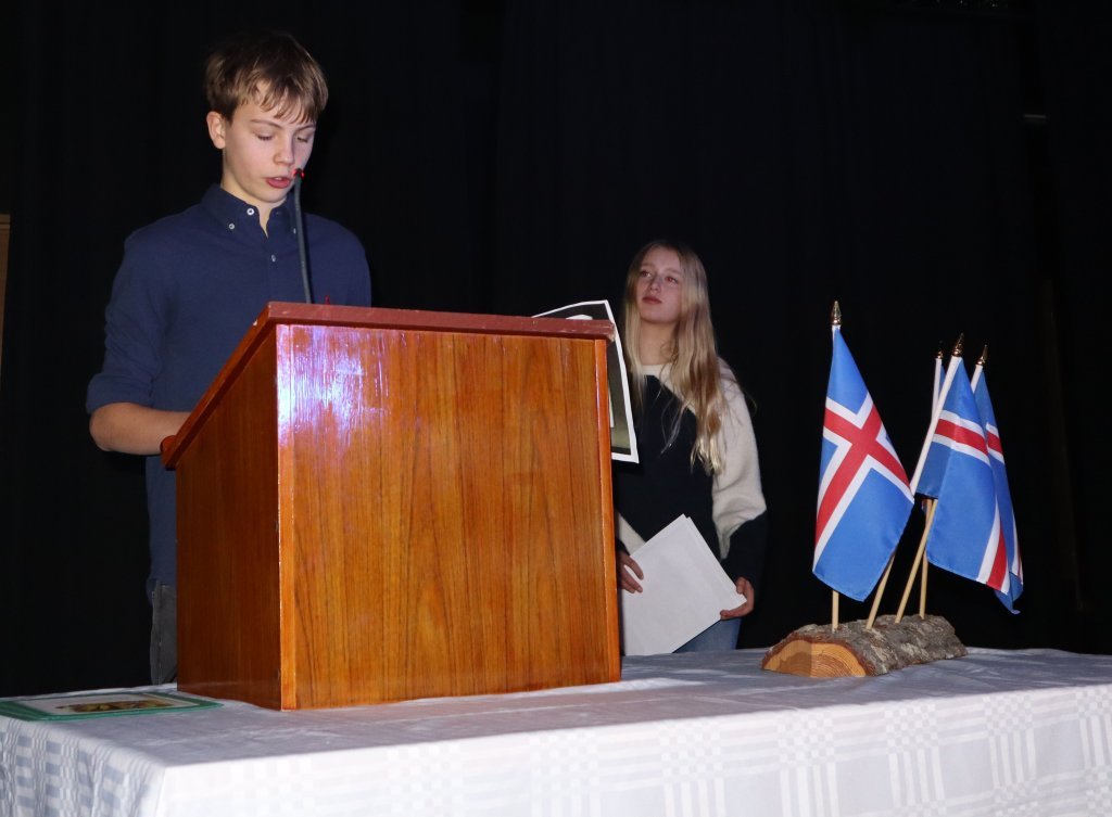 Það er hefð í Egilsstaðaskóla að fagna fullveldisdeginum 1. desember með stuttri dagskrá. Allir nemendur og starfsfólk skólans kom saman í matsal og hlýddu á ávörp, sögulestur og sungu svo saman í tilefni af Degi íslenskrar tónlistar. Fólk var sparibúið og hátíðarbragur yfir öllu.
