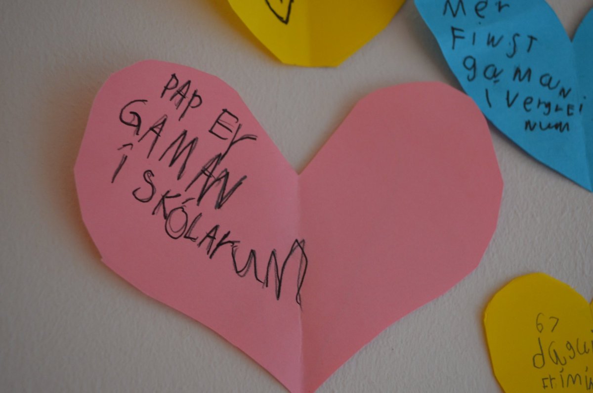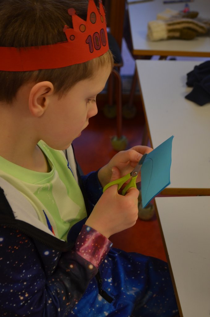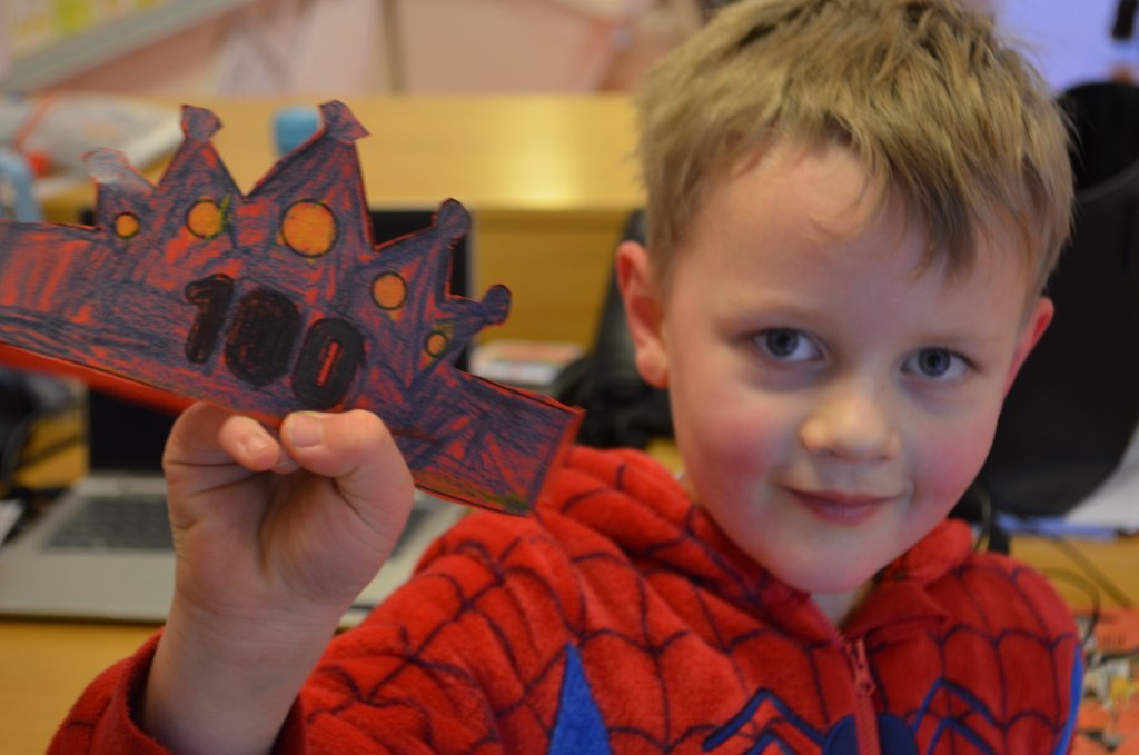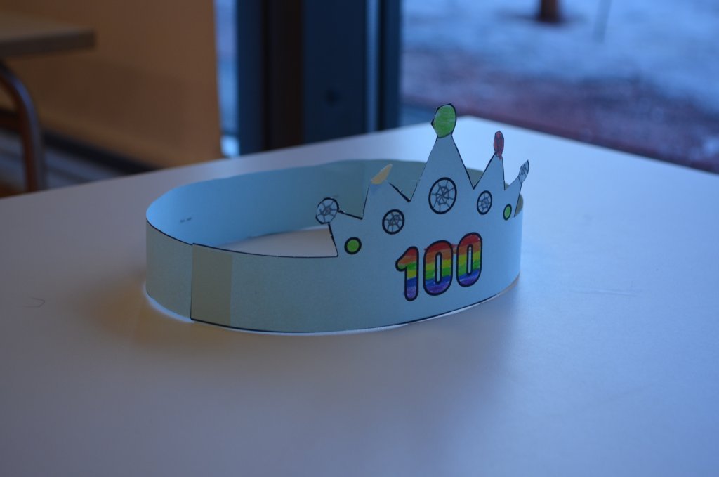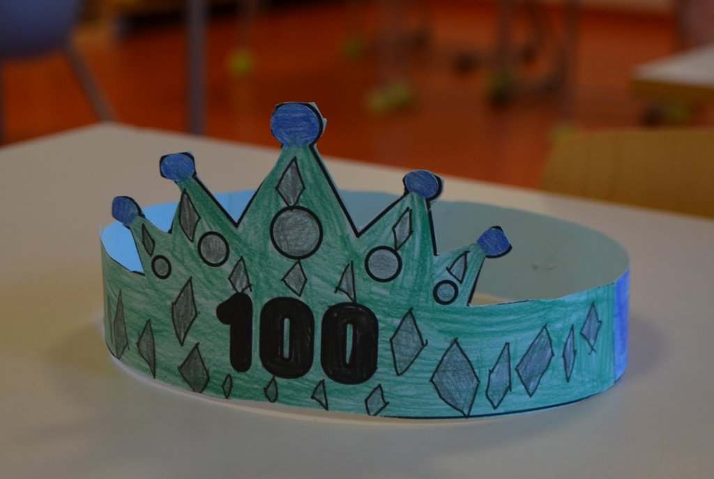 Í vikunni fögnuðu nemendur í 1. bekk því að þau hafa verið í skólanum í 100 daga. Krakkarnir mættu í náttfötum, skrifuðu orð og setningar um það sem þeim finnst best við skólann, bjuggu til kórónur, höfðu bíó og fengu ís.