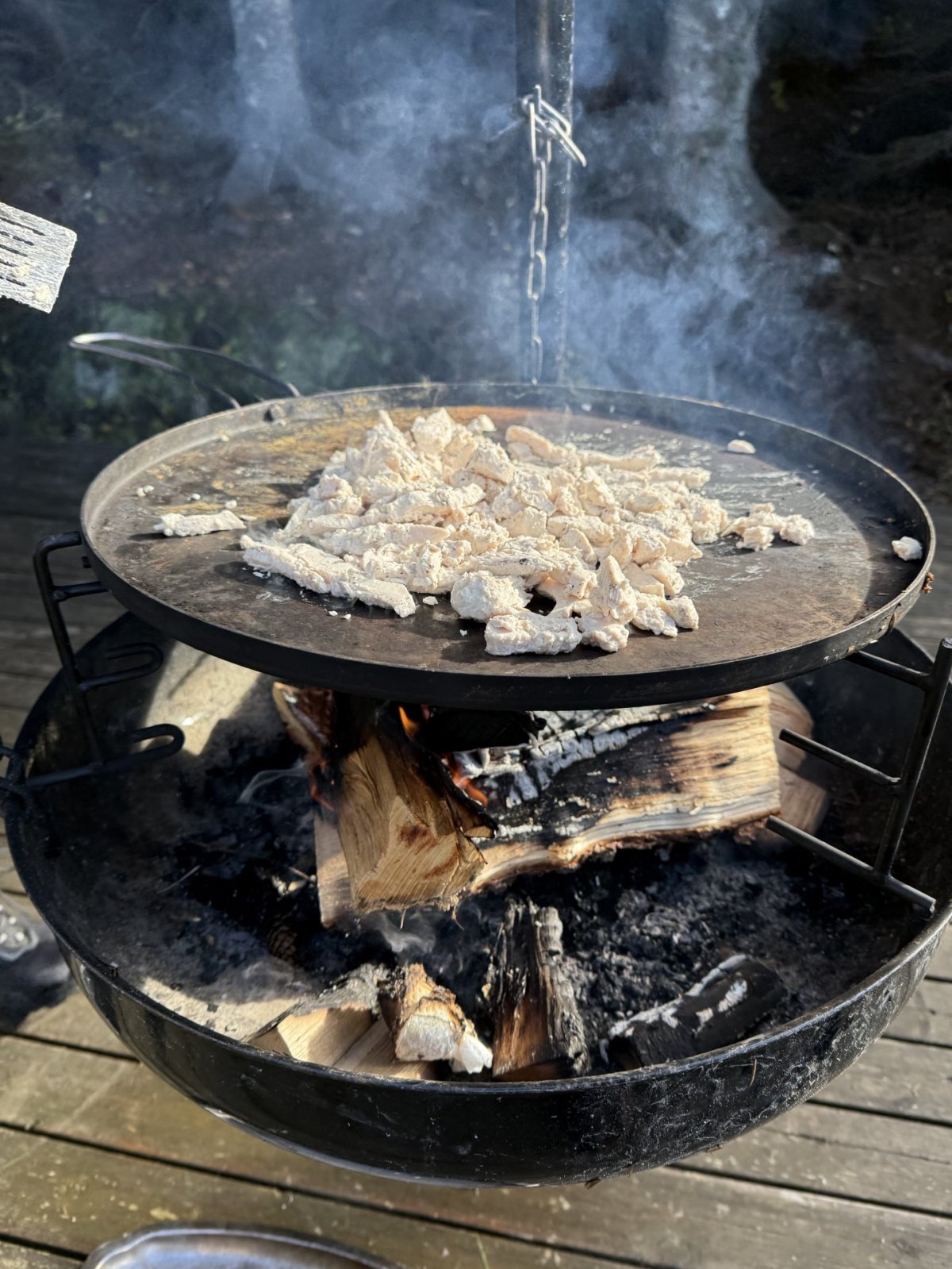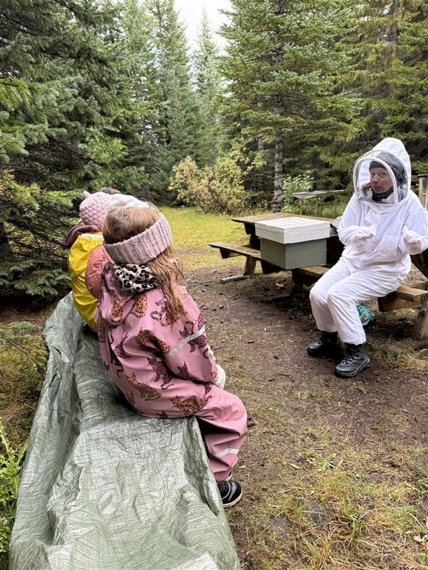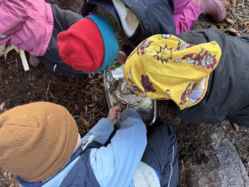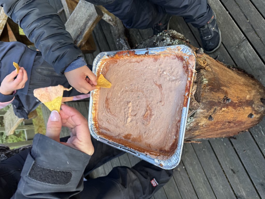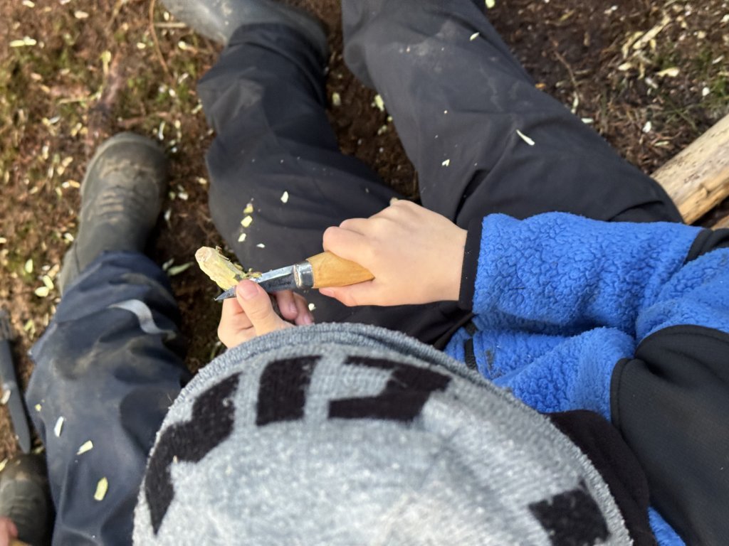 Krakkarnir fóru í þrjár vinnusmiðjur; lærðu að tálga, fengu býflugufræðsla og lærðu óhefðbundnar trjámælingar. Á meðan maturinn mallaði yfir eldinum hjuggu þau eldivið og fengu að prófa að kveikja eld. Eftir hádegisverðinn, sem voru eldbakaðar tortillur með kjúklingi og grænmeti, eldbökuð eðla og snakk og eldpoppað popp, fengu þau að leika lausum hala í nánasta umhverfi. Lækurinn var mest spennandi í þeim efnum.